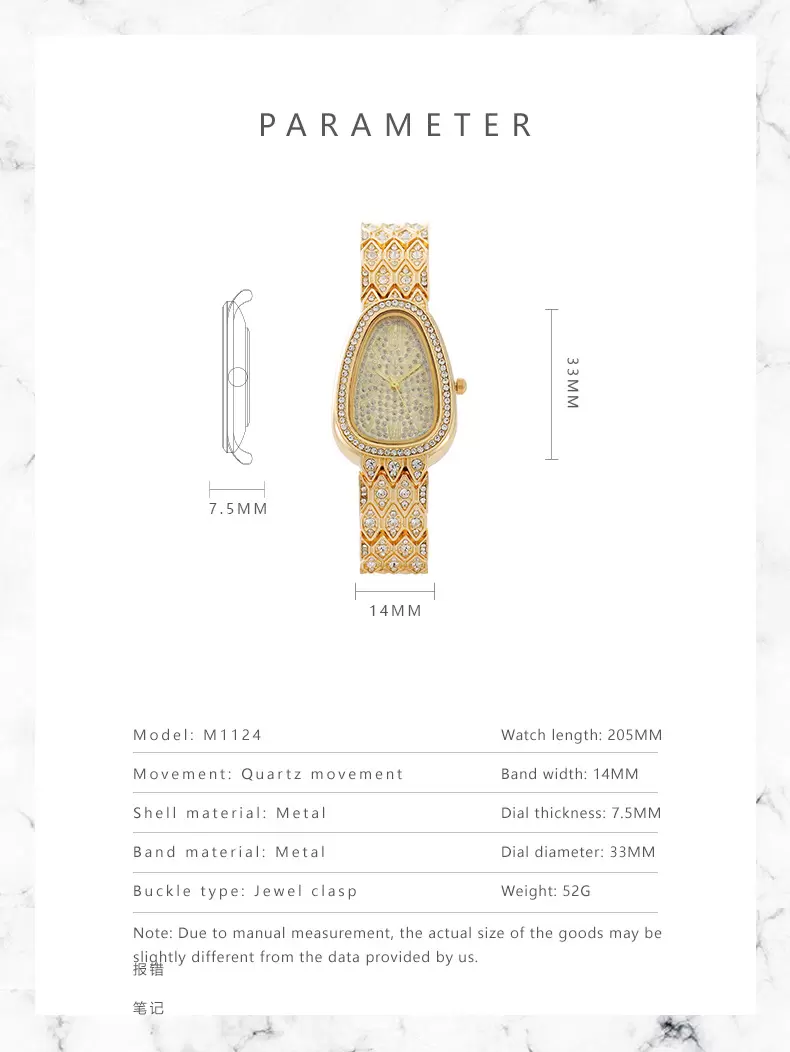 High-end snake-shaped bracelet with full diamonds fashionable women’s quartz watch EM1124