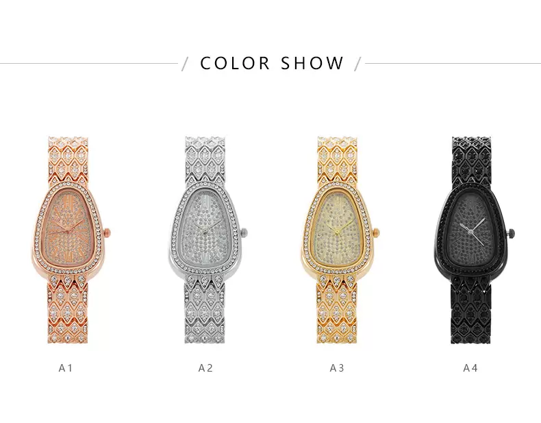 High-end snake-shaped bracelet with full diamonds fashionable women’s quartz watch EM1124